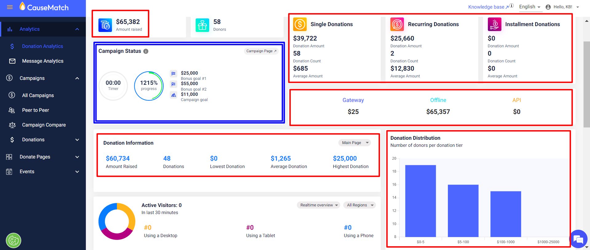 This new feature update provides us the facility to find the donors for a campaign and all details about them, directly from the Home section on the dashboard. We offer various ways to search for a donor or multiple donors, which is briefly elaborated below.